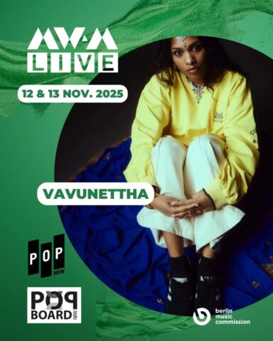 Das Showcase mit den drei NRW-Acts MARNELE, VAVUNETTHA und Tape Head & NONI (popNRW-Preisträger*innen 2025) findet am Donnerstag, den 13. November, im Maschinenhaus der Kulturbrauerei (Schönhauser Allee 36, 10435 Berlin) statt.